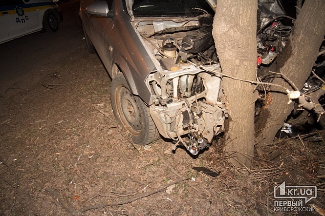 После столкновения иномарку отбросило в сторону,и она въехала в дерево на обочине встречной полосы движения.